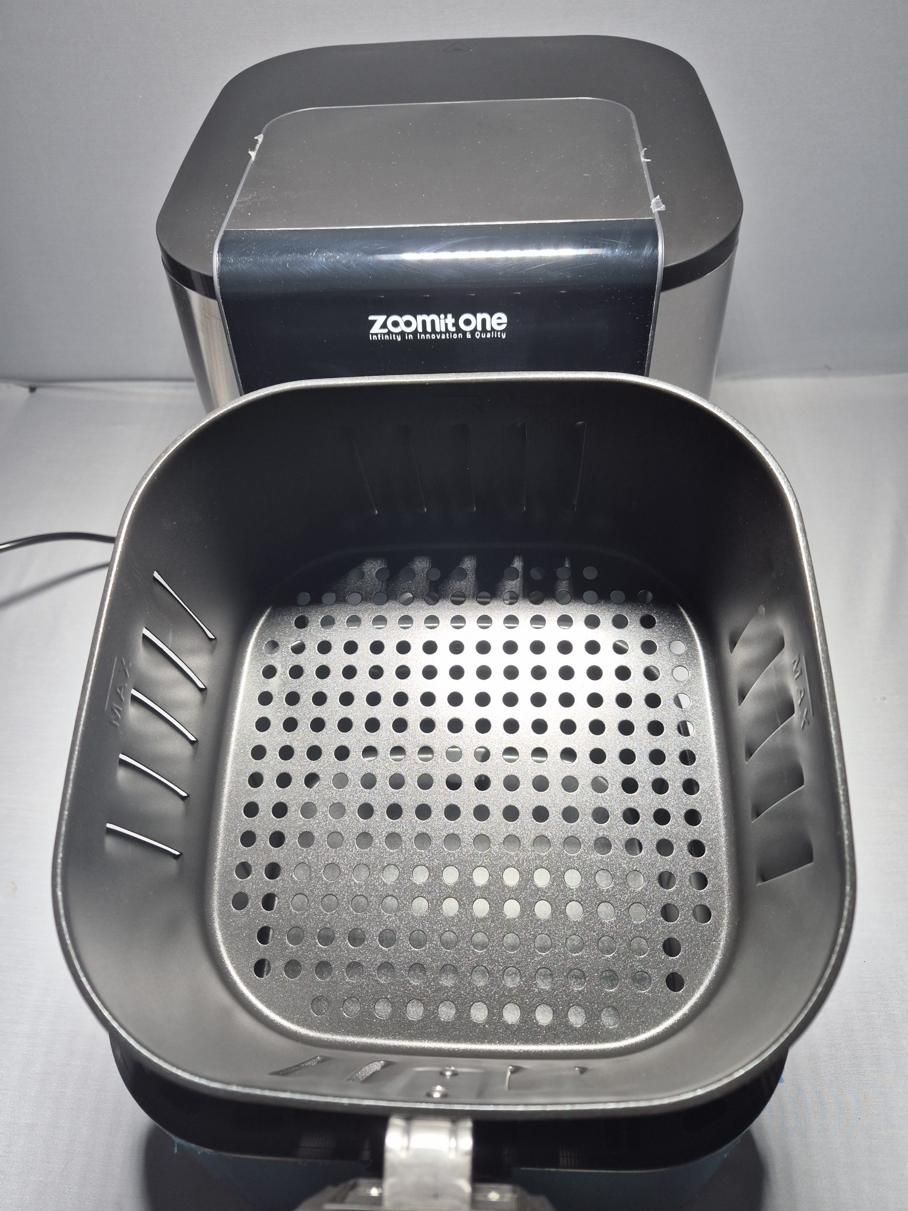 شکل ظاهری سبد سرخ کن بدون روغن زومیت وان مربع است.